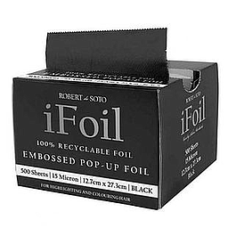 Foils, the super fast, easy and convenient way Robert De Soto iFoil Embossed Pop Up Pink is all about making highlighting and colouring easy, courtesy of a clever tissue box type dispenser. No cutting, no sticking, no tearing, no worries! Each sheet of foil is 100% recyclable and embossed for optimal grip, ensuring no slippage and saving you precious time. A space-saving dispenser with time-saving, pop up embossed foils? We love it!